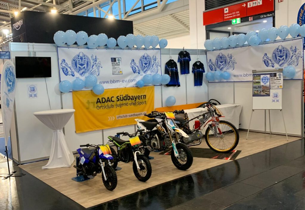 Unser Stand ist fertig aufgebaut und wartet auf Besucher. An jedem Tag sind aktive Vereinsmitglieder vor Ort, um euch Infos über unsere Rennsportaktivitäten, Kindertraining, Frauentraining, 2. BBM Mofarennen, 2. BBM Grasbahnrennen, … zu geben. Kommt vorbei – es rentiert sich bestimmt!