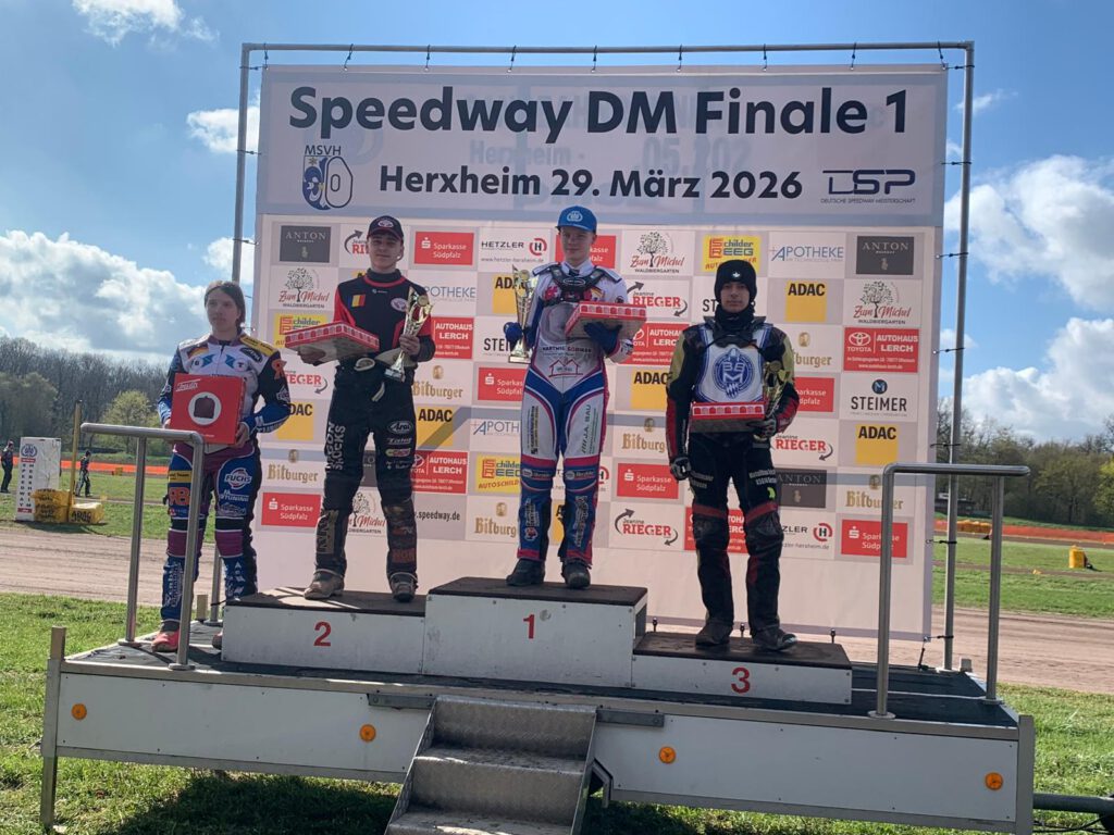 Im Rahmen des 1. Laufes zur Speedway DM fanden auch Nachwuchsrennen statt. In der Klasse JunA wurde unser Clubfahrer Sebastian Voin Vierter. Er war mit dem Dritten punktgleich. Durch Losentscheid war es dann Platz 4.